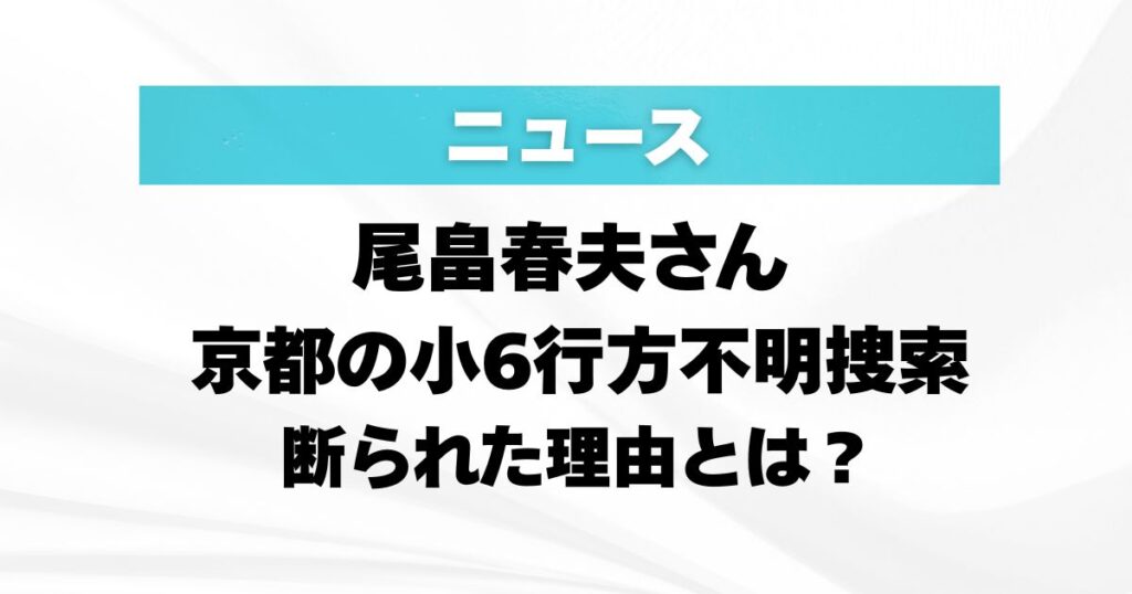 尾畠春夫さんの名前が、京都の小6男児行方不明の捜索をきっかけにあらためて広がっています。 大分から現地入りしたものの、捜索には加われなかったと伝えられ、「なぜ断られたのか」が気になった人も多かったようです。 今回は、尾畠春夫さんが京都の小6... -