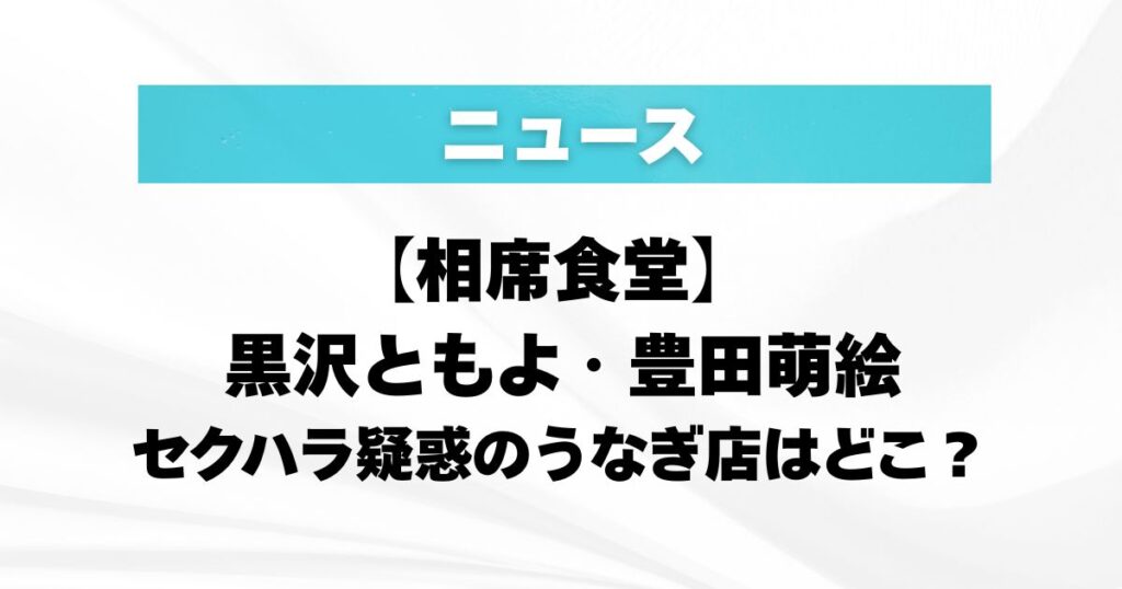 【相席食堂】黒沢ともよ・豊田萌絵にセクハラ疑惑のうなぎ店はどこ?店主は誰?